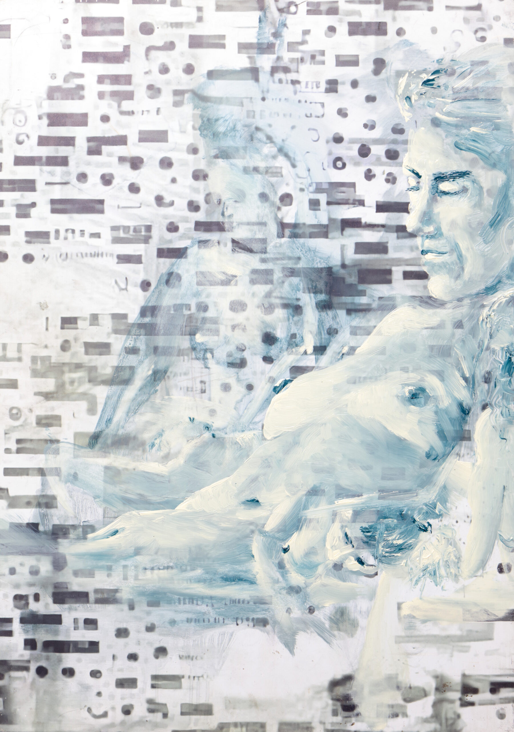 The ongoing series bodyTime() explores consent, temporality, and the grammar of embodiment through photographic double exposures. My paintings, often large-scale, render ambiguity as density—light, history, and gesture in layered complication.